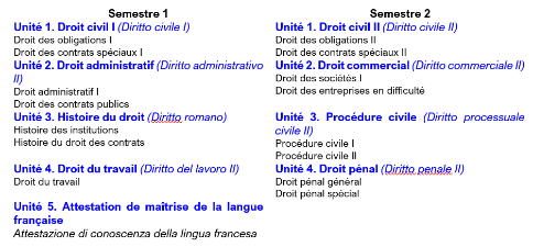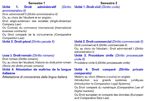 Double diplôme de Master français et de Laurea Magistrale italien donnant, en Italie, accès à l'examen d'entrée à la profession d'avocat.